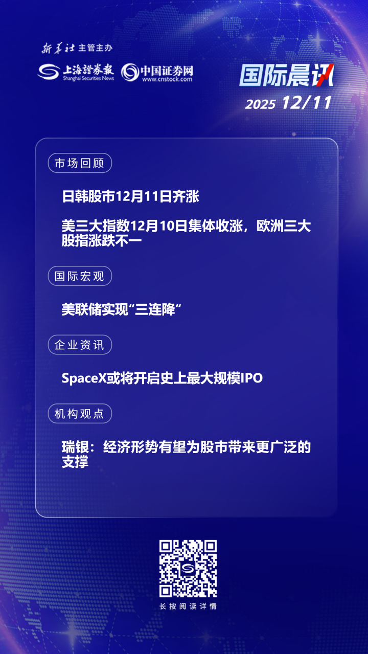 12月11日海外晨讯|好意思联储兑现“三连降“ SpaceX或将开启史上最大鸿沟IPO